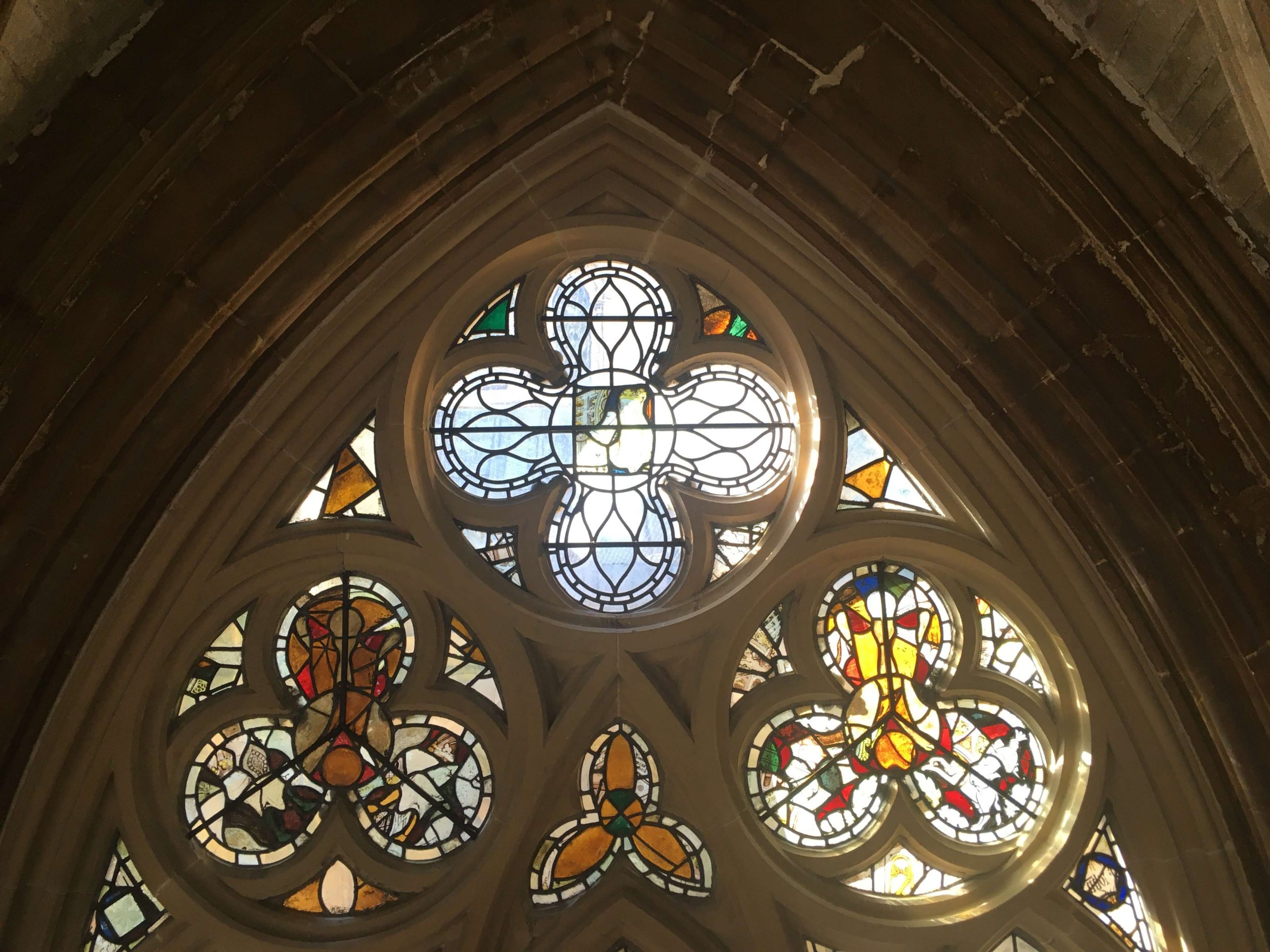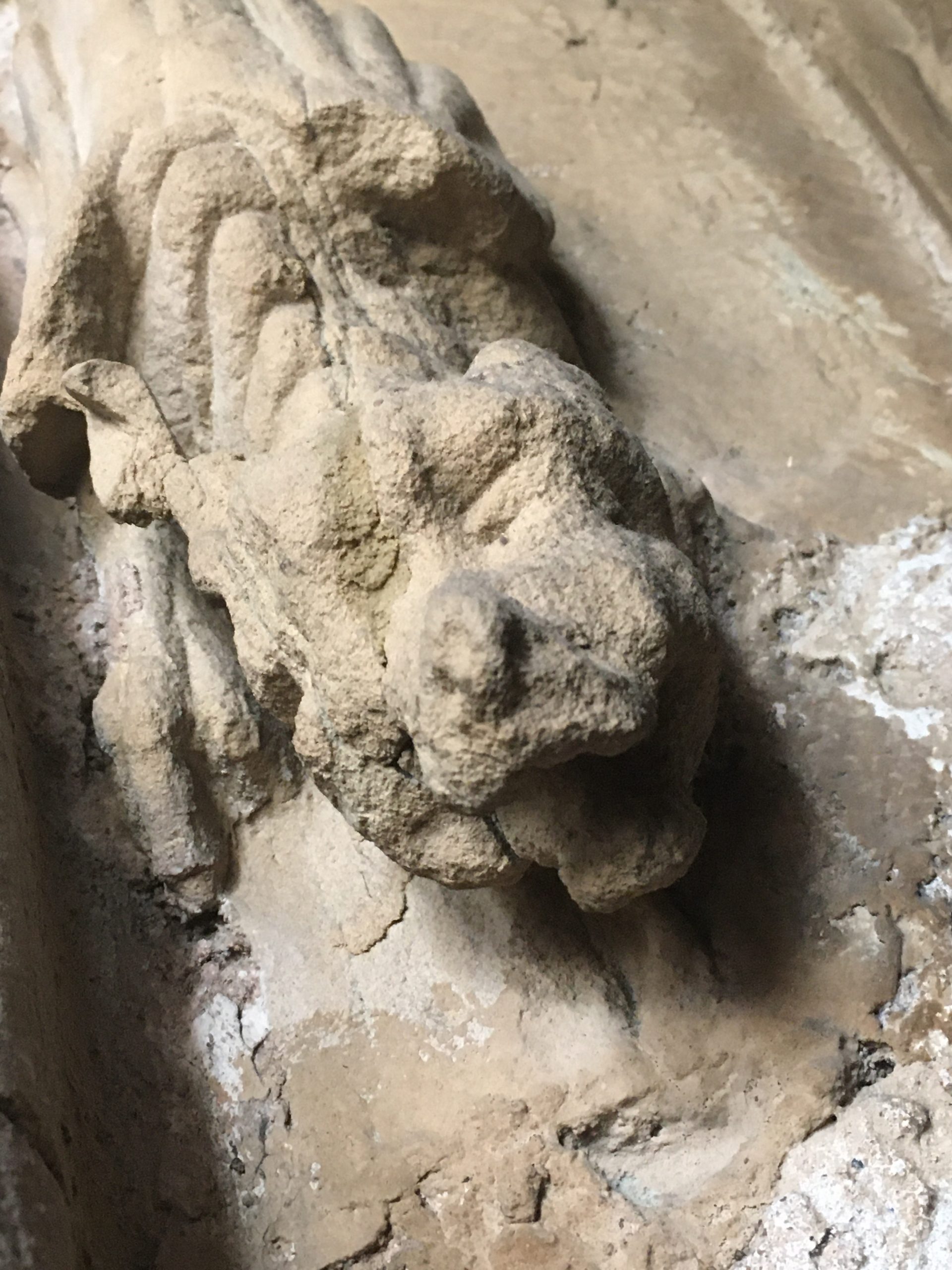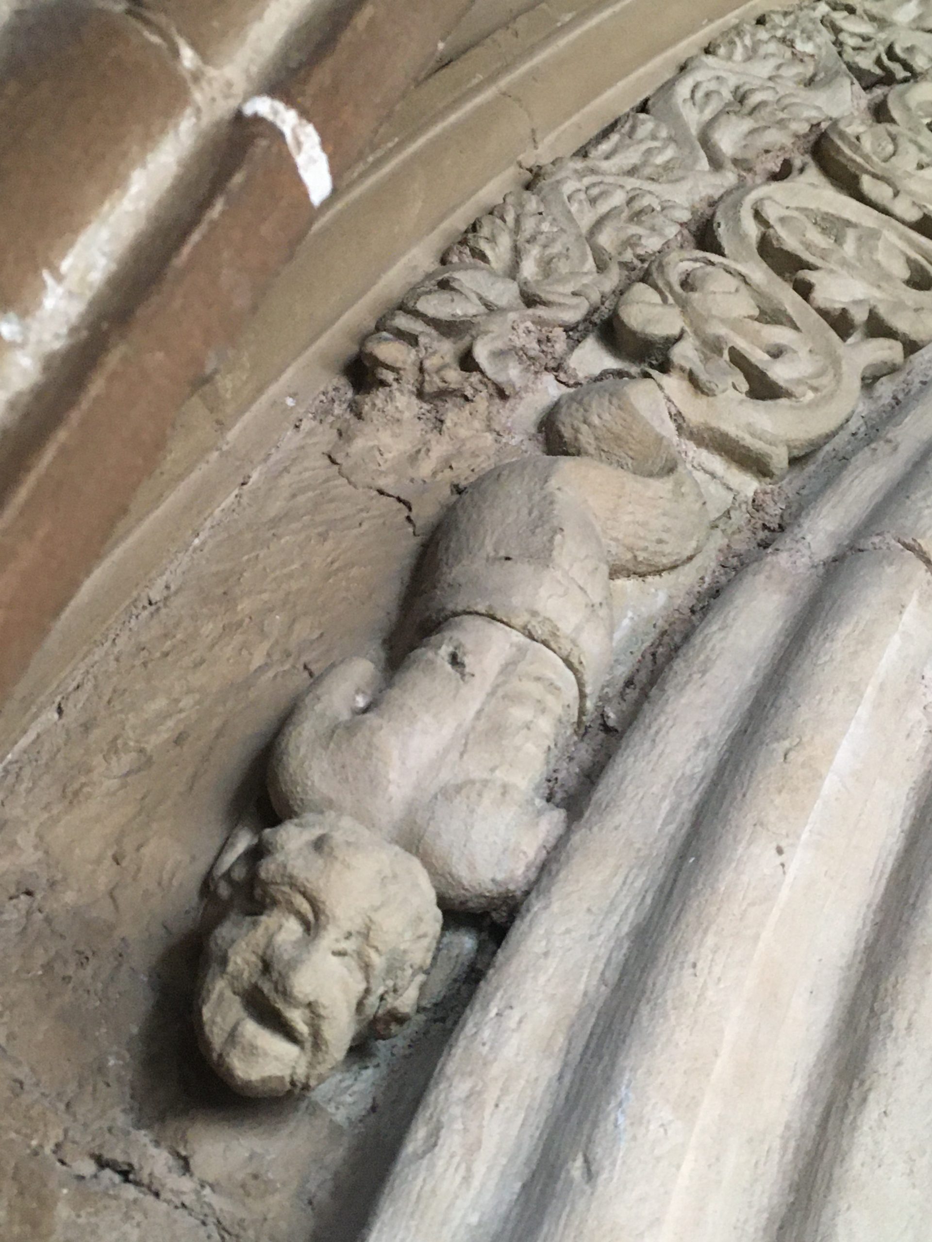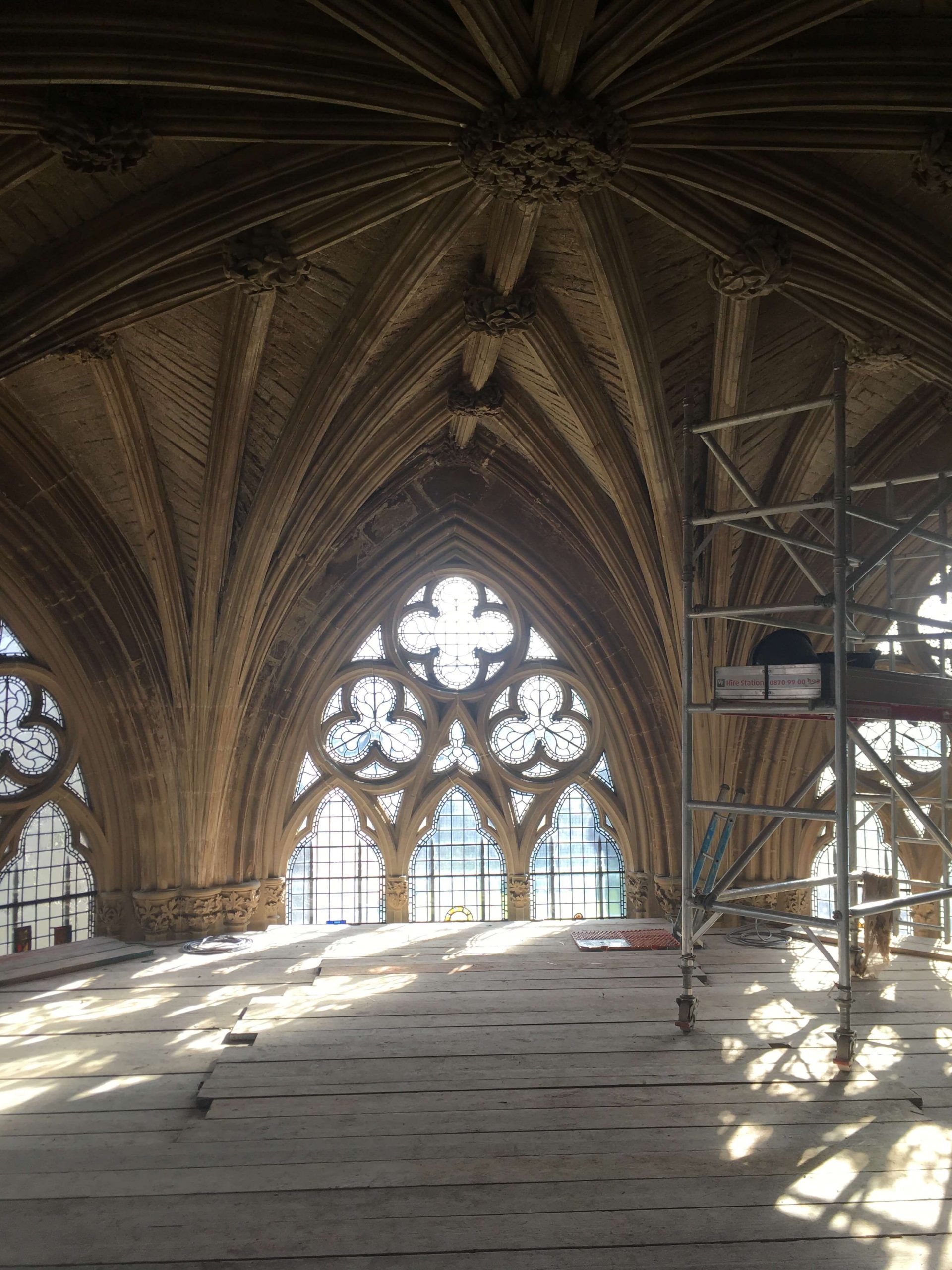 It has been an exciting time in our lovely Chapter House over the last 9 months! Careful installation of some 21st century additions (lights, underfloor heating, power and wifi capability), along with cleaning and conservation work has meant the taking up of the floor, the covering of the precious carvings for protection, installation (temporarily) of a huge scaffolding tower and hours of painstaking labour. This week the wraps were taken off as works are nearly complete! Over the coming weeks we will see the installation of the mirror and the completion of the slype (passageway). Meanwhile, we share some photos of rarely seen high level carvings taken last week.
