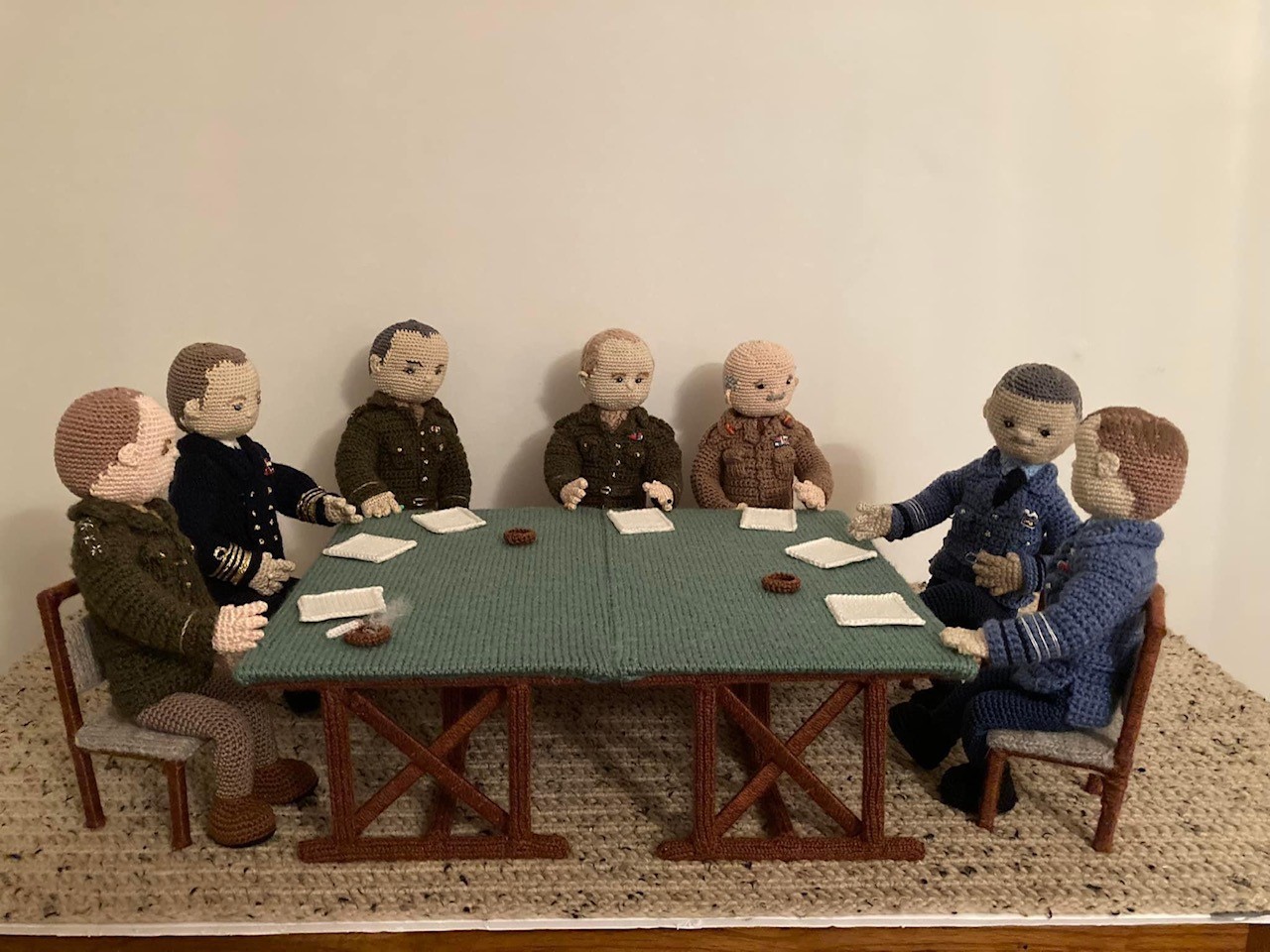 “One of my favourite scenes that will be on display is the depiction of the famous moment Lord Lovat and Piper Bill Millin crossed Pegasus Bridge, and another is when he plays his pipes on Sword Beach. Piper Millin’s son donated his father’s favourite jumper to us which we unravelled (frogged) and used the wool to knit the figures of Piper Bill - it’s given a real poignancy to these scenes."