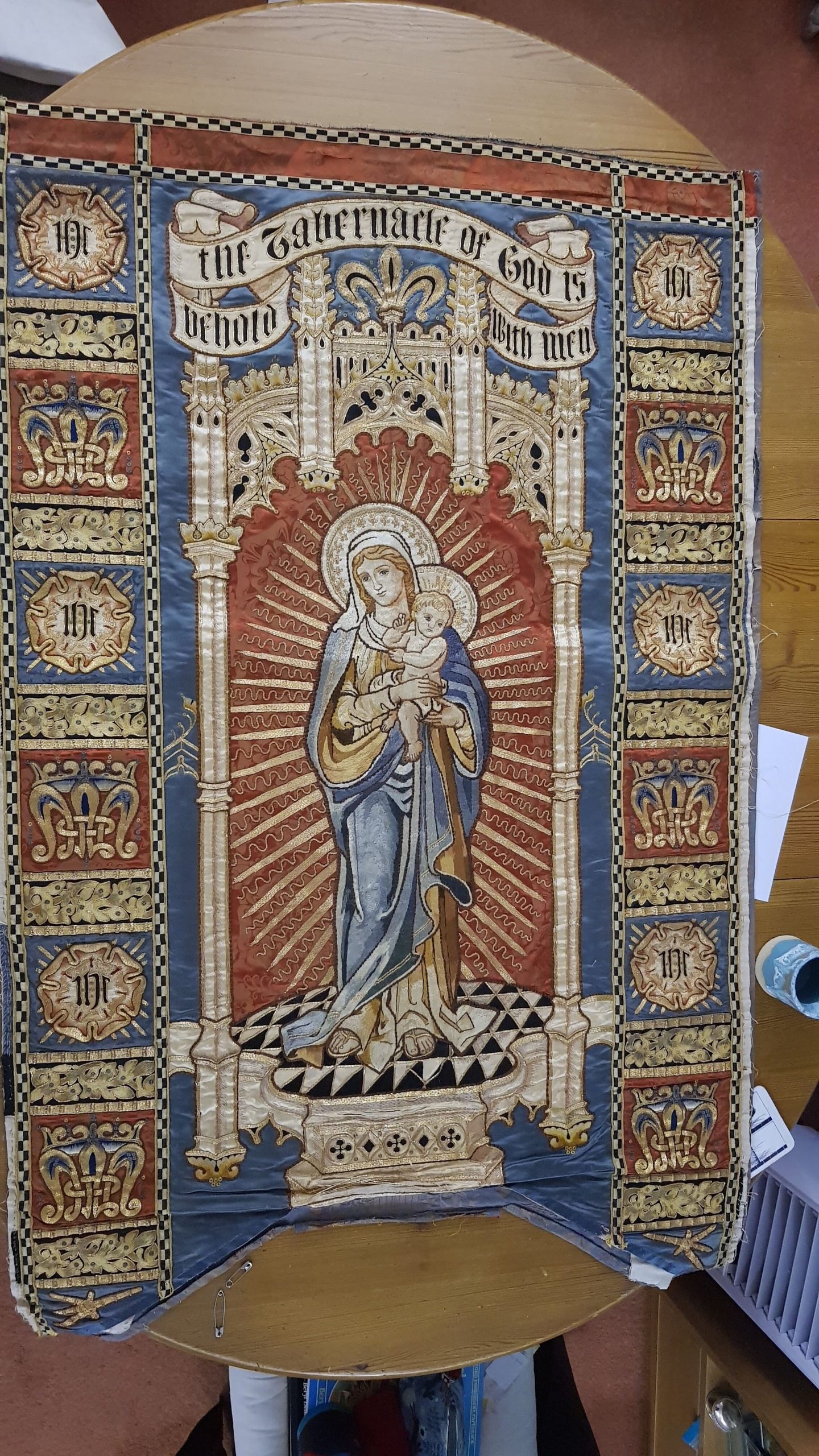 In a busy worshipping community like Southwell Minster, there is a constant need for new textiles to replace old and worn out items, or as a part of developing and renewing worship in the Minster or elsewhere in the diocese. Embroidery has been used in Christian worship since the early years of the church, and by the time the current minster was built in the 12th century, embroidered vestments and church furnishings took their place amongst the finest stonemasonry, glass and woodwork as an intrinsic act of worship by their creators, as well as providing symbolism and Christian imagery for people attending services and visiting the minster. To this day we carefully plan and make any new vestments and textiles with these needs in mind, aware of the heritage that surrounds and inspires us, as well as the needs of our current and future congregations. Some of our recent work is shown in the pictures below, and we’re currently working on some exciting new projects for the minster to supply much-needed new vestments and frontals.