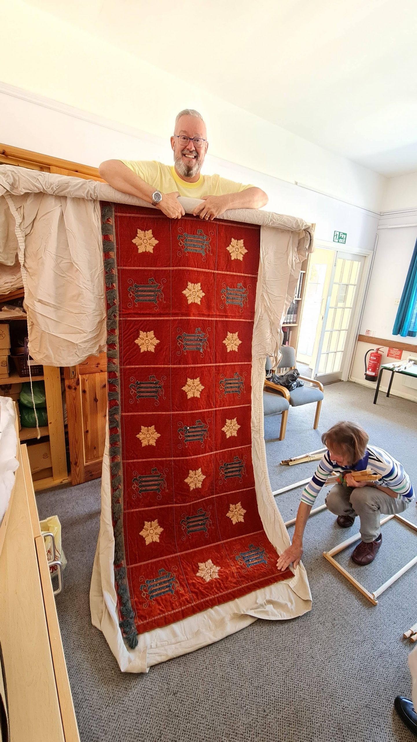 “I had never done any needlework before 2014, but the political fallout that ensued after I married my husband Laurence caused a deep depression, and I found cross stitch very therapeutic. The resulting cushion has become known as the “wellness cushion”! When Emma found out that I enjoyed needlework, she inveigled me into to joining the Guild, even though I felt like I was a beginner. I really love the work we do and the new skills I am learning, and the opportunity to contribute in such a direct and physical way to worship. I also love being in the group – I am currently the only man there, but I have been warmly welcomed into a caring fellowship. I am hooked!” J.P.