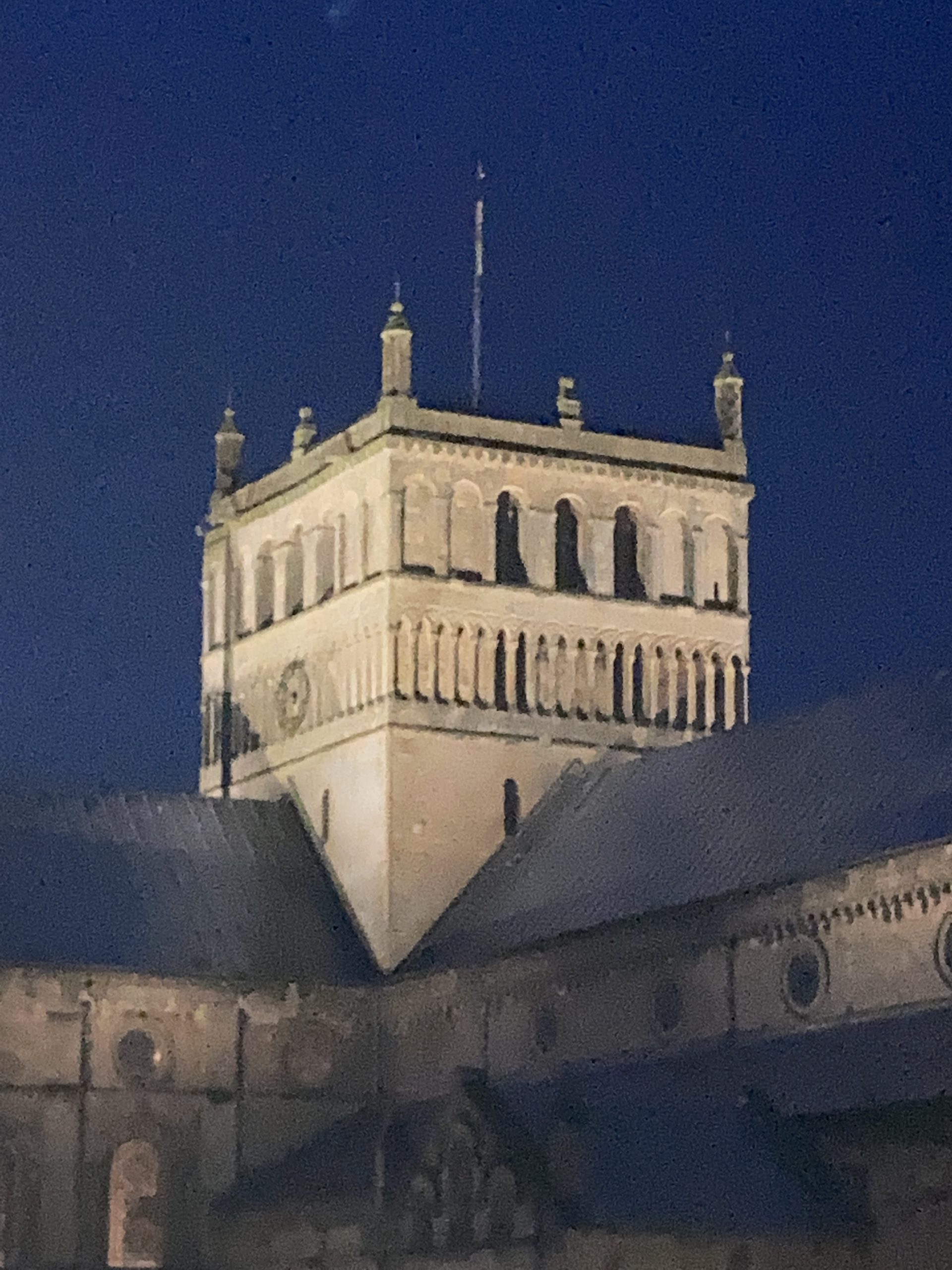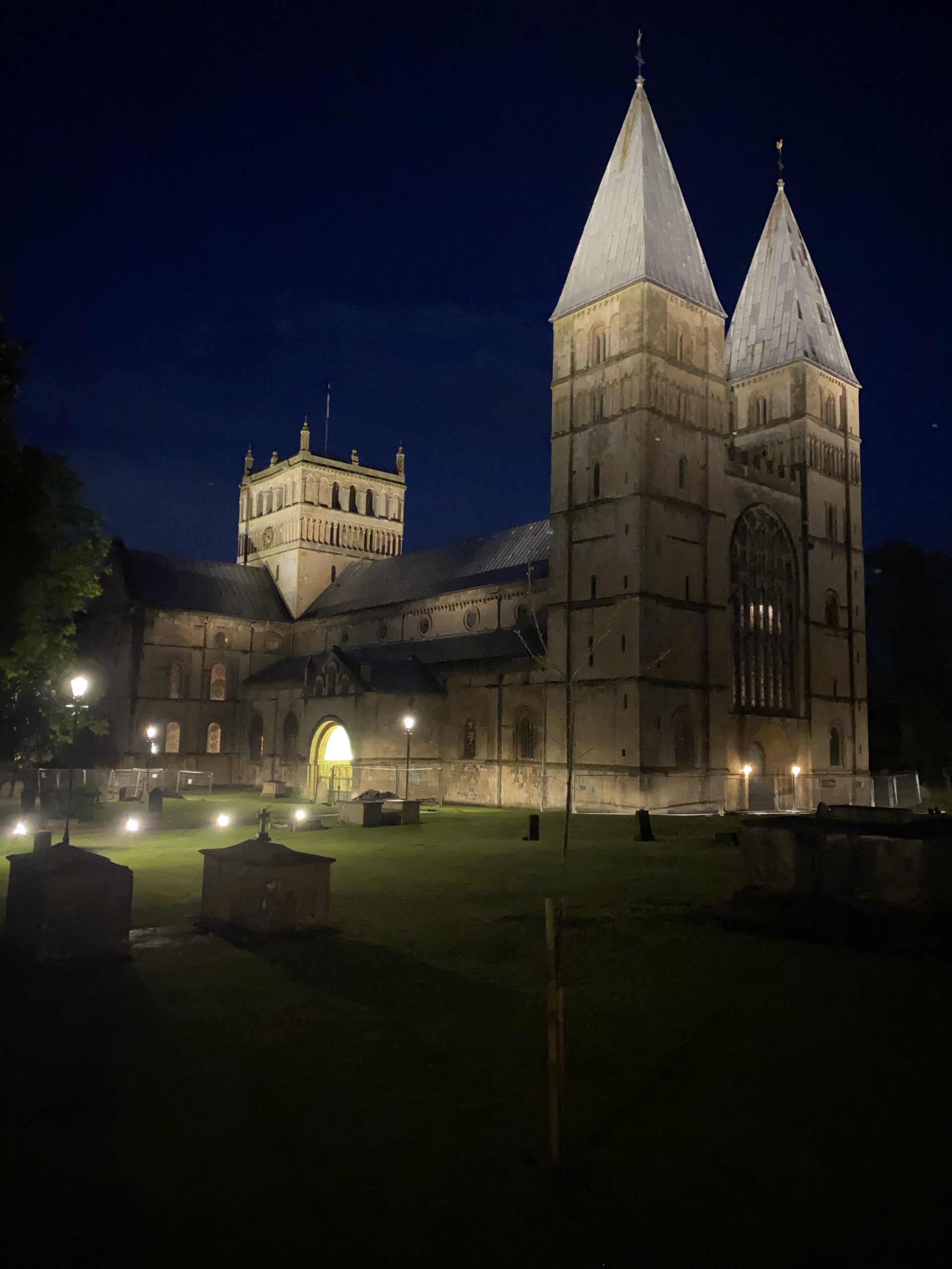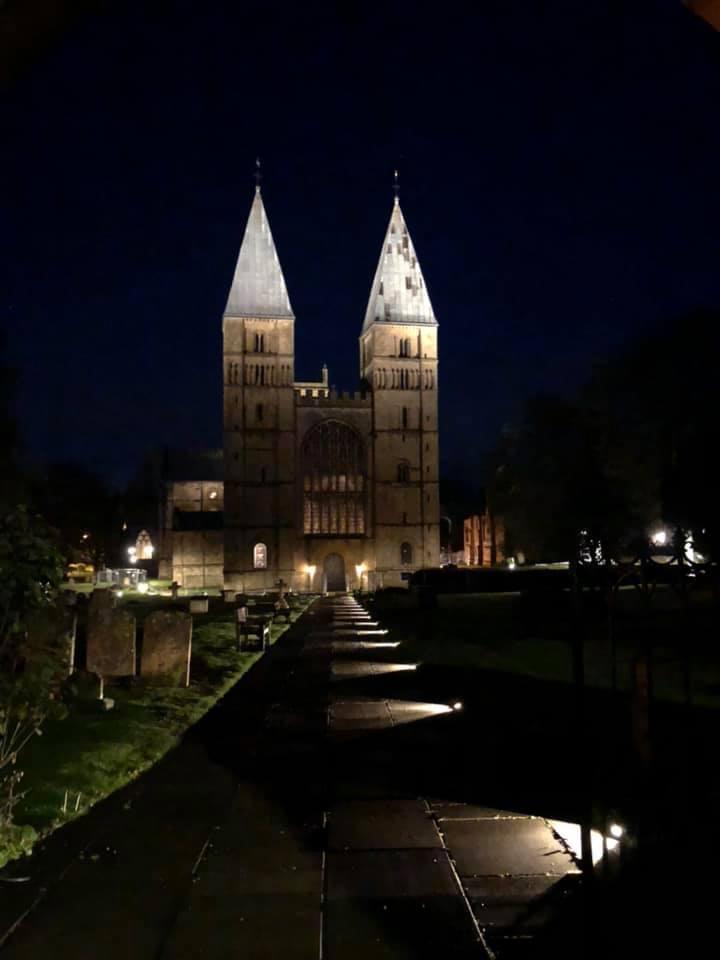 At the start of the Leaves of Southwell project we promised better exterior lighting and, over the last few weeks, locals have spotted the Minster beautifully illuminated as the new floodlights are tested and focussed. Smaller, modern, energy efficient LED light replace the bulky 40 year-old models, saving 75% of previous running costs. Some attach to new lamp posts above eye level, eliminating glare for passers-by. The floodlighting has been designed by the team at Light Perceptions to complement the warm tones of the Minster’s exterior, highlight the architectural features of the ‘pepperpots’ and central tower and to emphasise the main entrances, while the subtle, low level illumination of the numerous pathways make the grounds safer and more inviting.